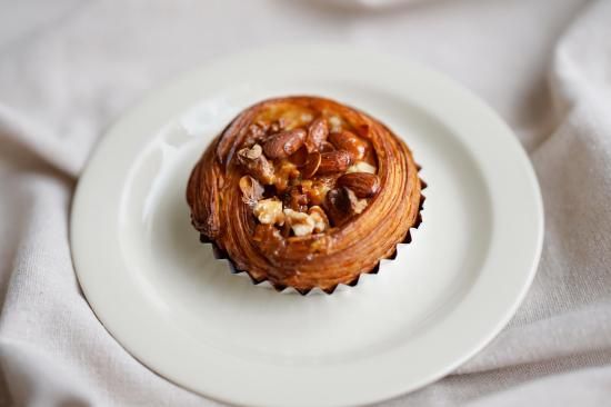 りんごとメープルを巻き込んだ秋のクロワッサンの生地に、キャラメリゼしたナッツを散らして焼き上げました。